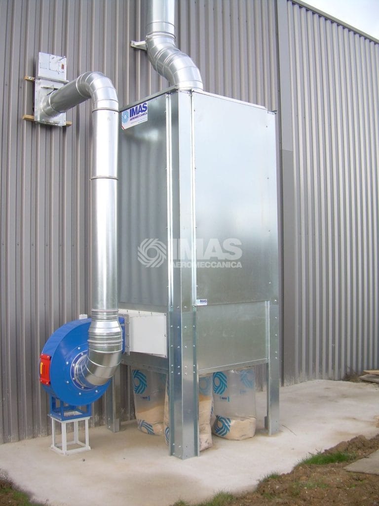 System zsypowy składa się z worków nylonowych po 4 sztuki na moduł, opcjonalnie dla każdego modułu lej zsypowy z odprowadzaniem do big-baga. Zaprojektowane i zbudowane zgodnie z kontrolą jakości ISO 9001, w zakładach IMAS z paneli z blachy ocynkowanej o grubości 1,5/2 mm (DX 51 D Z200), oferowane są w wersji otwartej z widocznymi filtrami workowymi do wnętrz, lub w wersji „C” (zamkniętej, do montażu na zewnątrz), pracują wyłącznie w podciśnieniu, z nasadką do odpowietrzania dla każdego modułu. Opcjonalnie dostępne są komponenty umożliwiające instalację w strefie 22 i oczyszczanie pyłów wybuchowych, klasa ST1 kst 200.