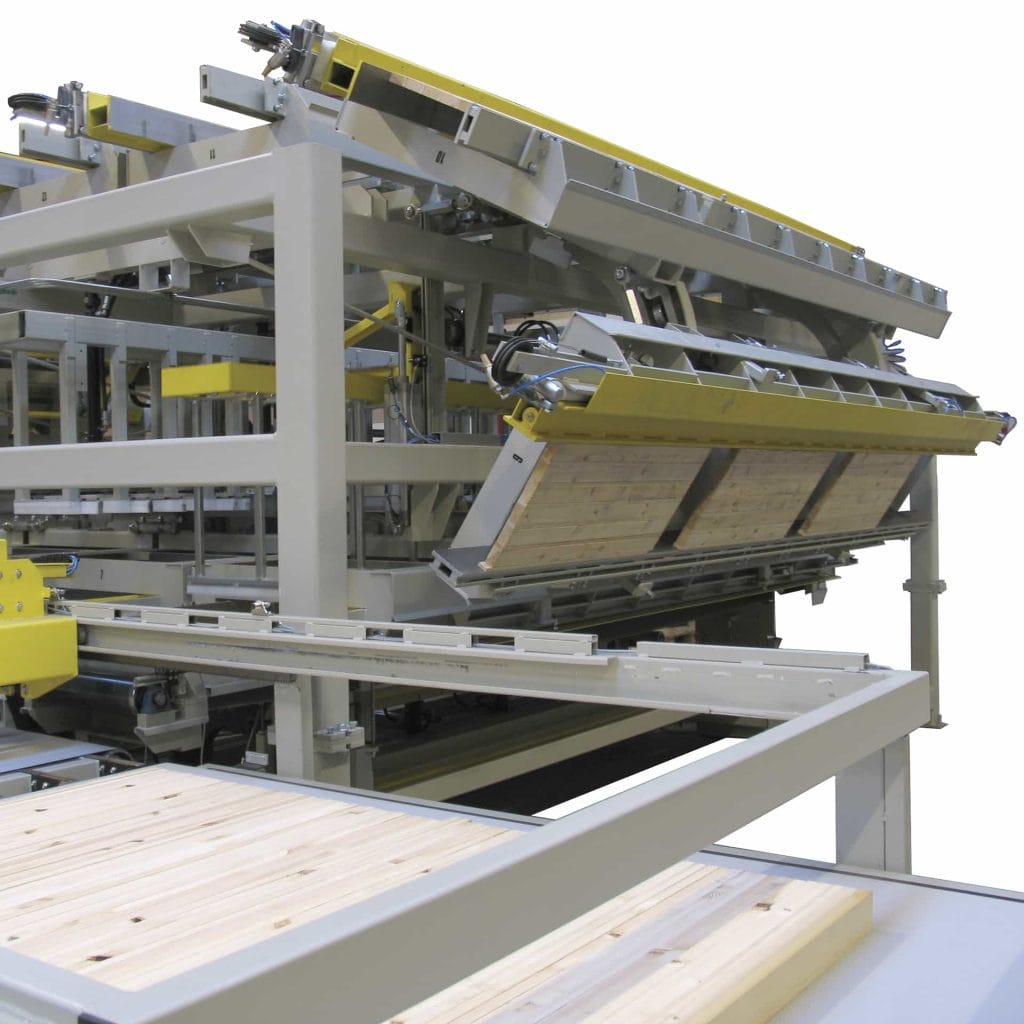 Linia z prasą LHF do produkcji belek GLT (glulam). Prasa wykorzystuje technologię częstotliwości radiowej do utwardzania kleju, w efekcie czego prasa jest zdolna do pracy z bardzo krótkimi czasami prasowania, co pozwala na bardzo wysoką wydajność. Linia produkcyjna z tą prasą oferuje najbardziej efektywny i niezawodny system utwardzania kleju na rynku. Jest idealna do produkcji belek klejonych o długości do 27 metrów.